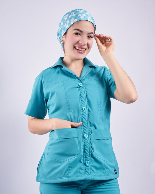 Nuestra casaca Camila es ideal para esta temporada de verano, gracias a su diseño delgado, fresco y cómodo, elaborada con material antifluido, perfecta para el trabajo diario. Pensada especialmente para nuestras enfermeras, combina practicidad y estilo para acompañarte en cada jornada.